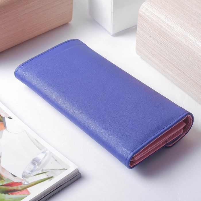 Кошелёк женский, 3 отдела, для карт, монет, цвет синий