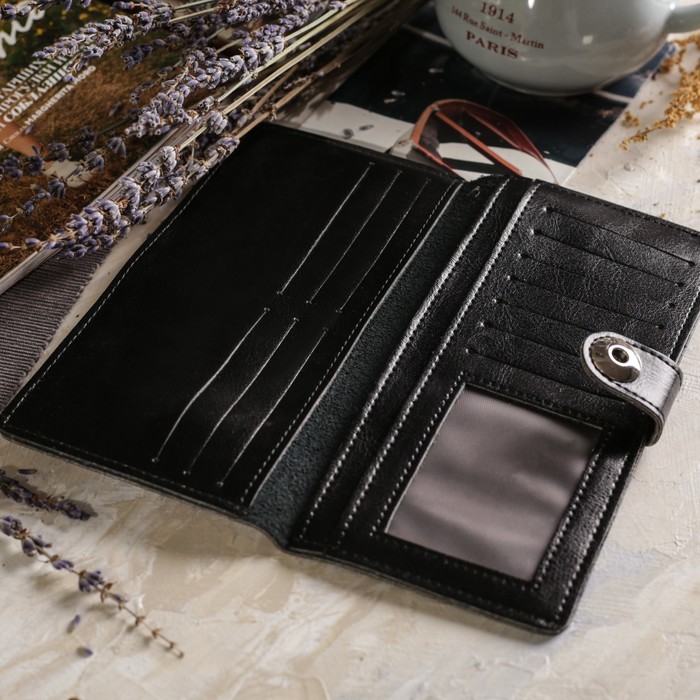 Кошелёк женский, 3 отдела, для карт на магните, цвет чёрный