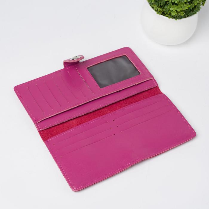 Кошелёк женский, 3 отдела, для карт на магните, цвет фуксия