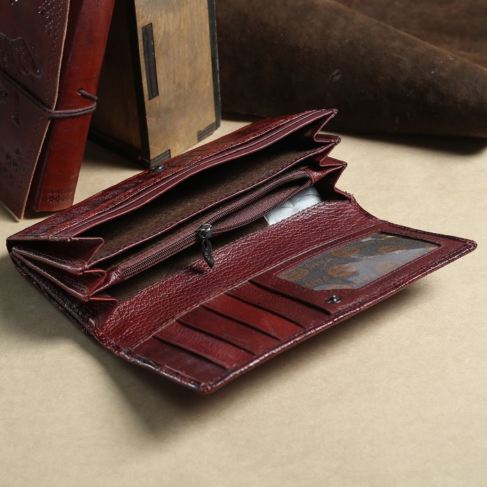 Кошелёк женский, 3 отдела, для монет, для карт, на клапане, цвет коричневый