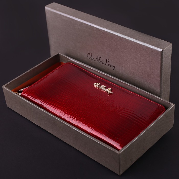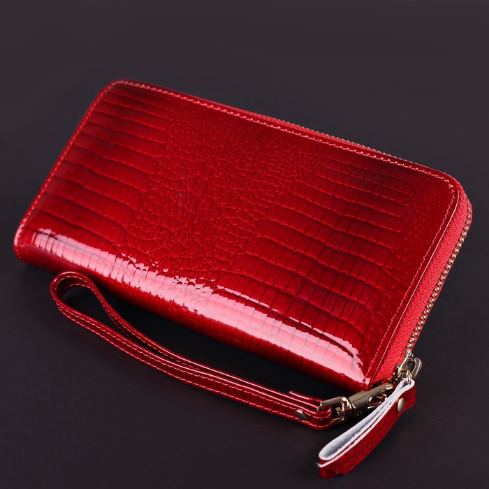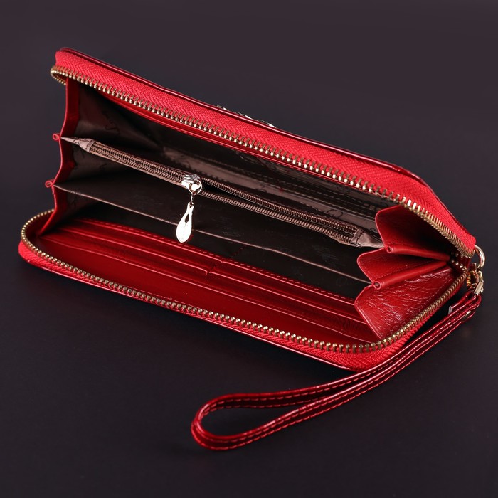 Кошелёк женский, 3 отдела, для монет, для карт на молнии, с ручкой, цвет красный