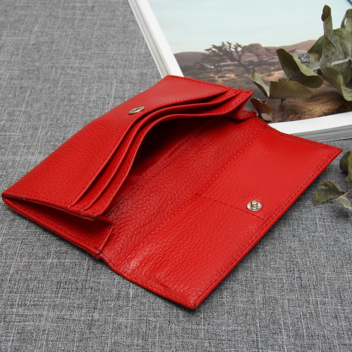 Кошелёк женский, 3 отдела, наружный карман, флоттер, цвет красный