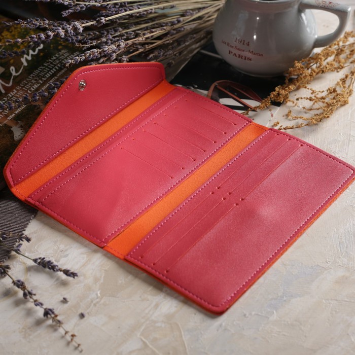 Кошелёк женский, 3 отдела, отдел для карт, цвет коралловый