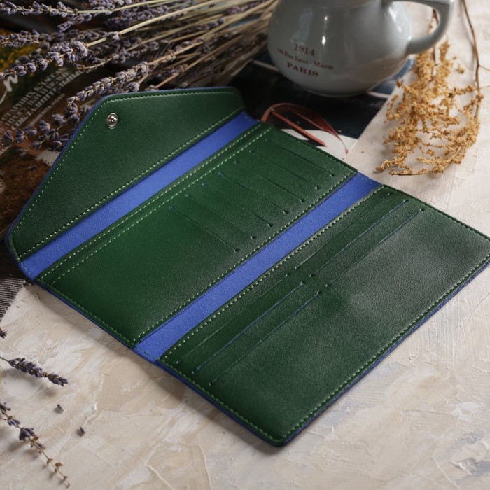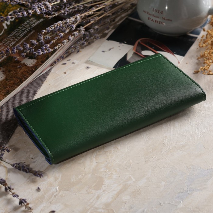 Кошелёк женский, 3 отдела, отдел для карт, цвет зелёный