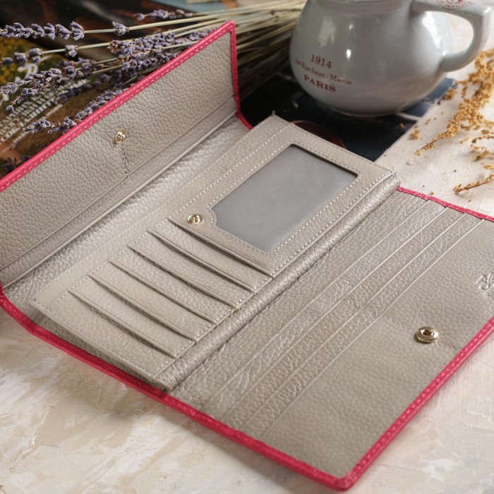 Кошелёк женский, 3 отдела, отдел для карт, для монет, цвет розовый