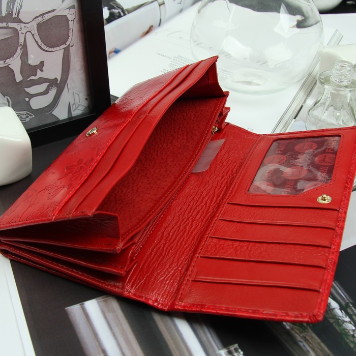 Кошелёк женский, 4 отдела, для карт, для монет, цвет красный