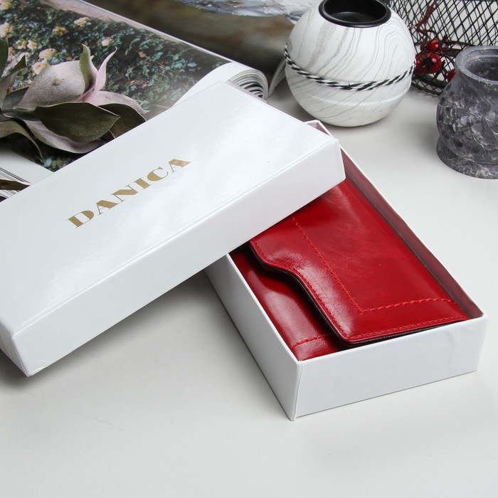 Кошелёк женский, 4 отдела, для карт, для монет, на клапане, цвет красный