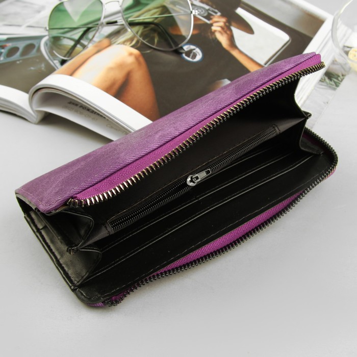 Кошелёк женский, 4 отдела, для карт, для монет на молнии, джинс фиолетовый