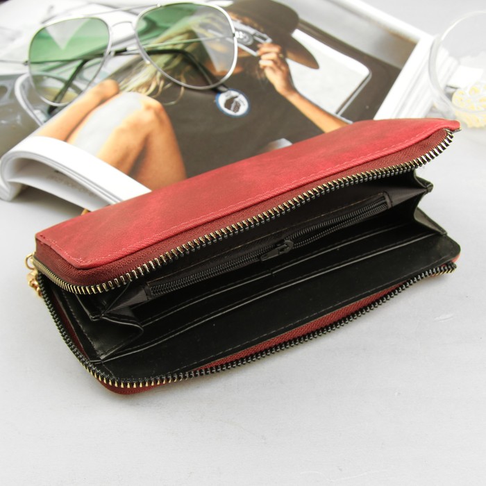 Кошелёк женский, 4 отдела, для карт, для монет на молнии, джинс красный