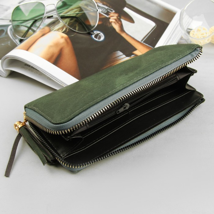 Кошелёк женский, 4 отдела, для карт, для монет на молнии, джинс зелёный