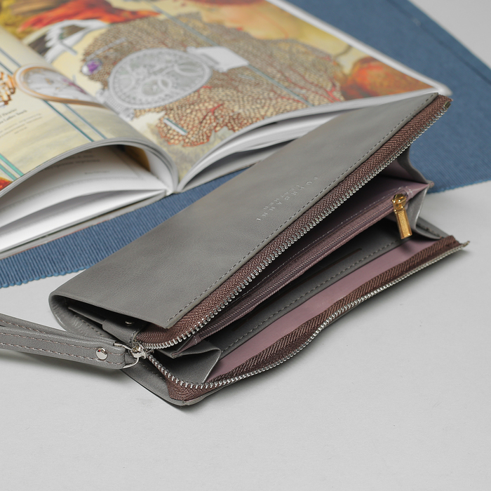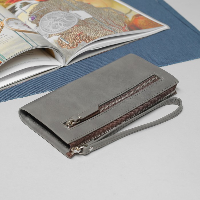 Кошелёк женский, 4 отдела, для карт, для монет, наружный карман, цвет серый