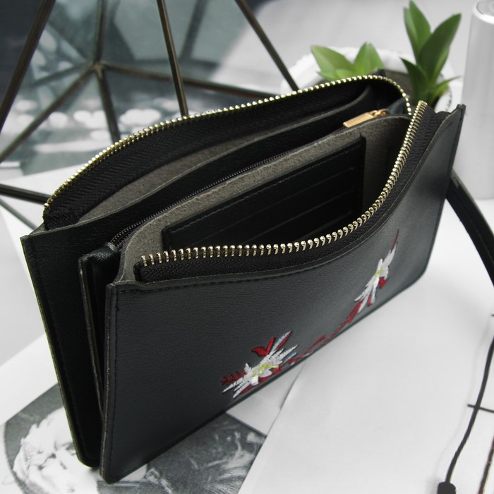 Кошелёк женский, 4 отдела для карт, для монет, с ручкой, цвет чёрный