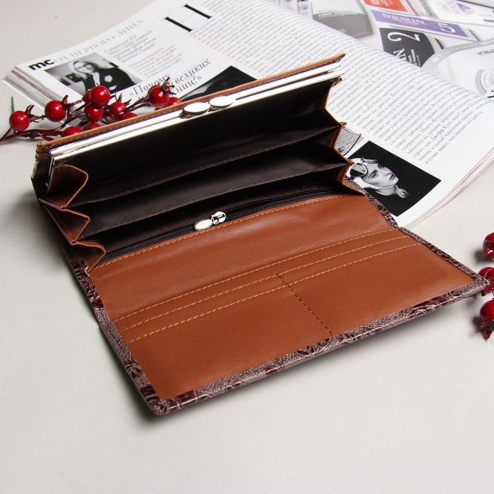 Кошелёк женский, 4 отдела, для карт, отдел рамка, на клапане, цвет коричневый