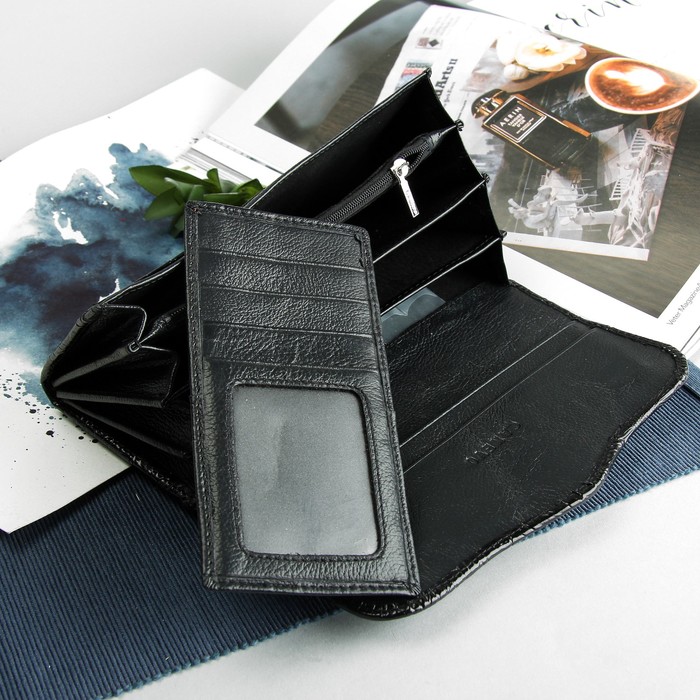 Кошелёк женский, 4 отдела, для монет, вкладыш для карт, наружный карман, цвет чёрный