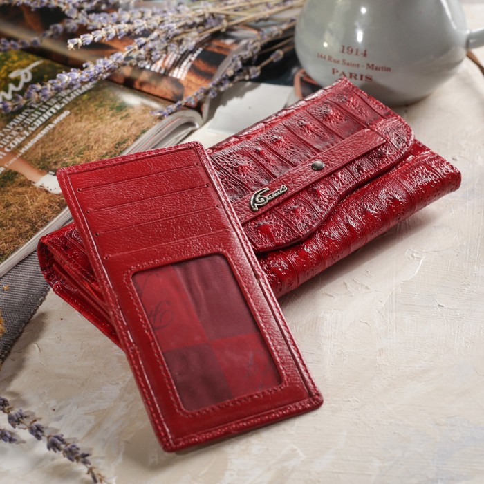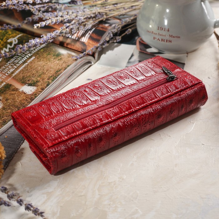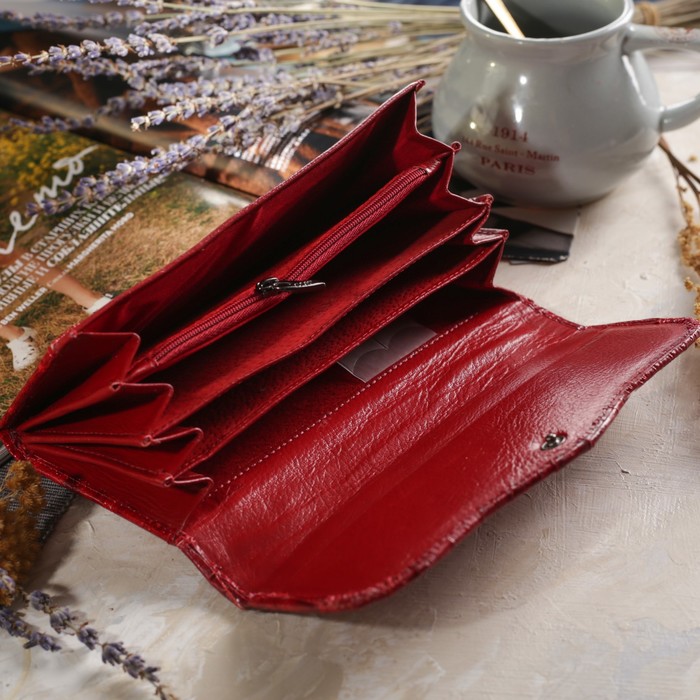 Кошелёк женский, 4 отдела, для монет, вкладыш для карт, наружный карман, цвет красный