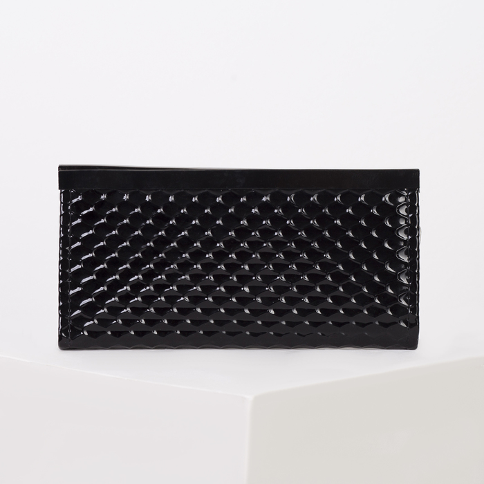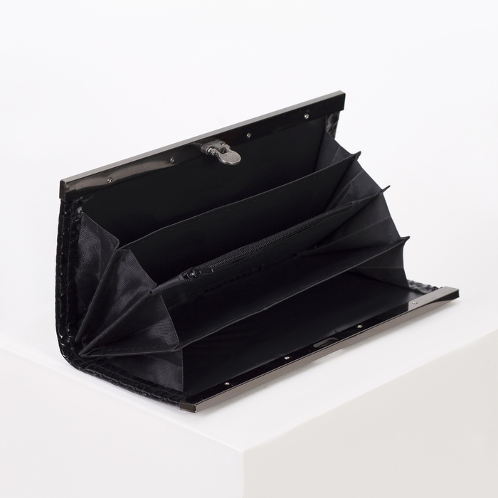 Кошелёк женский, 4 отдела, лакированный чёрный