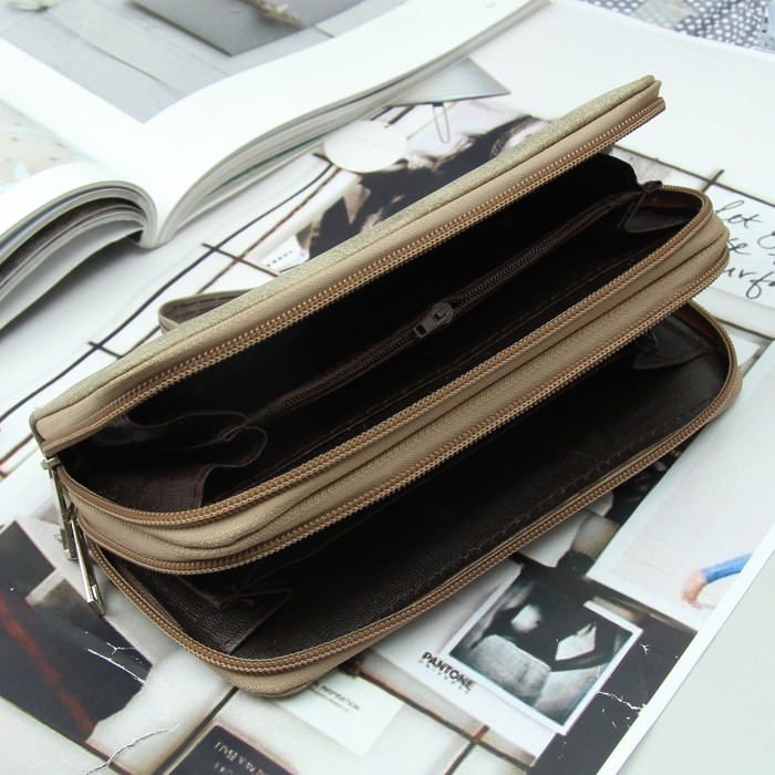 Кошелёк женский, 4 отдела на 2 молниях, для карт, для монет, с ручкой, цвет хаки