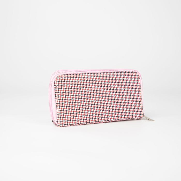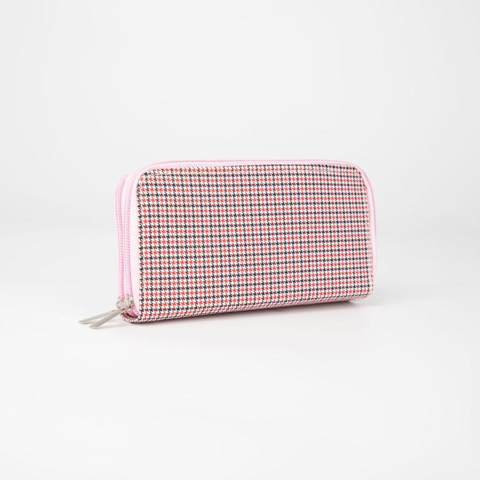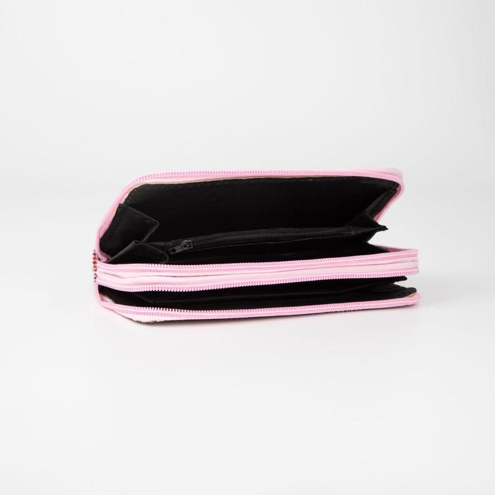 Кошелёк женский, 4 отдела на молниях, для карт, для монет, с ручкой, цвет красный/розовый