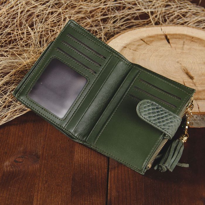 Кошелёк женский, 5 отделов, для карт, для монет, цвет зелёный