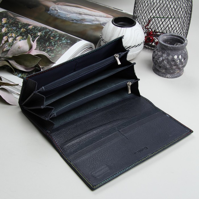 Кошелёк женский, 5 отделов, для карт, для монет, на клапане, цвет синий
