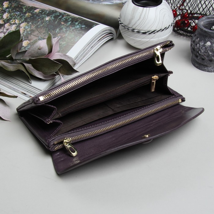 Кошелёк женский, 5 отделов, для карт, для монет, на клапане, цвет сиреневый