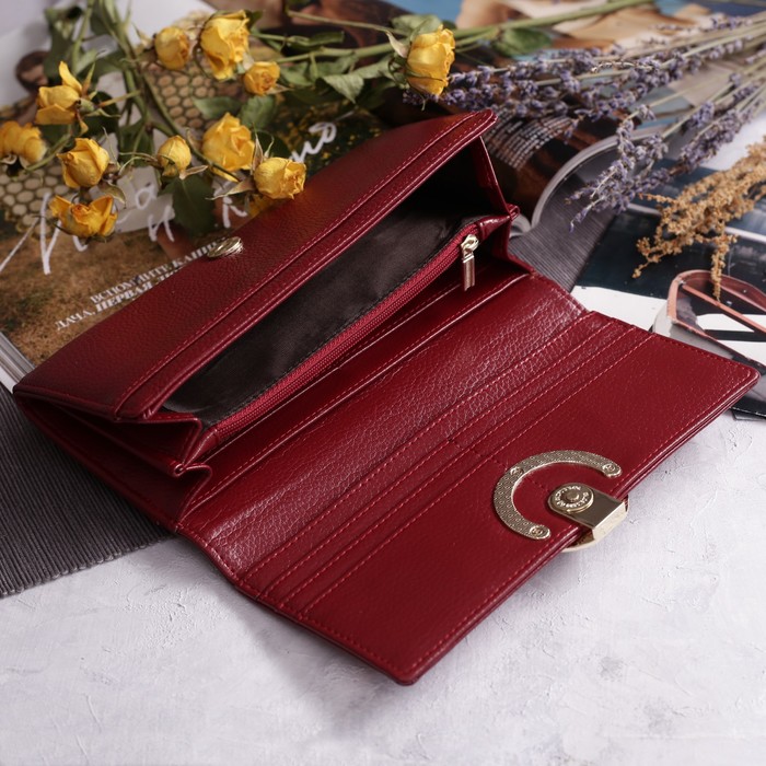 Кошелёк женский, 5 отделов, для карт, для монет на молнии, цвет красный