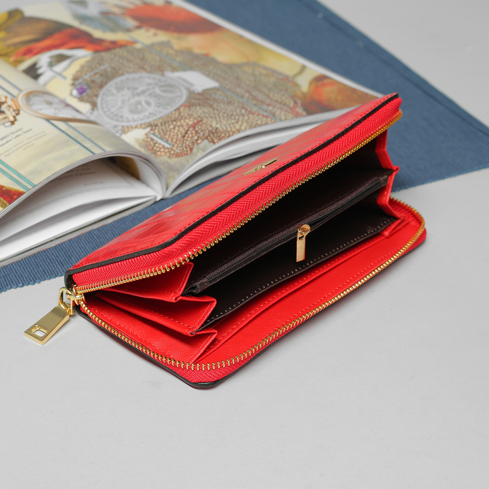 Кошелёк женский, 5 отделов, для карт, для монет, на молнии, с ручкой, цвет красный