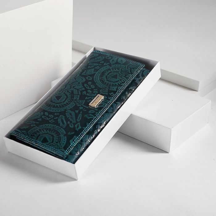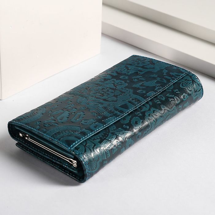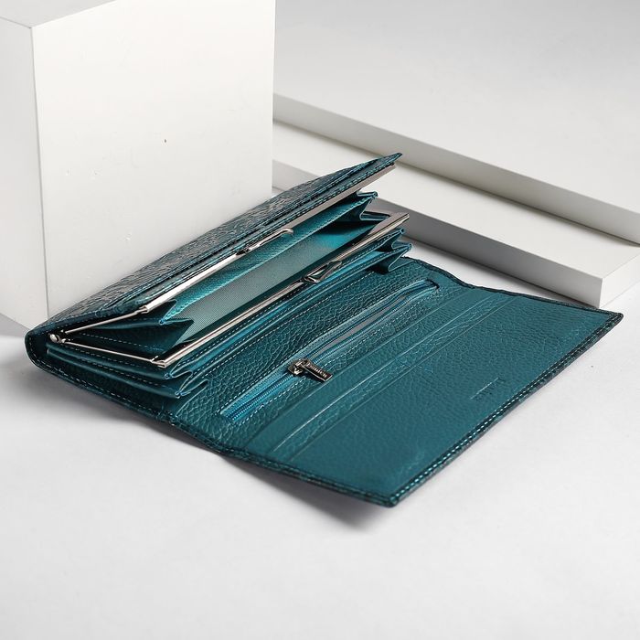 Кошелёк женский, 5 отделов, для карт, для монет, наружный карман, цвет бирюзовый