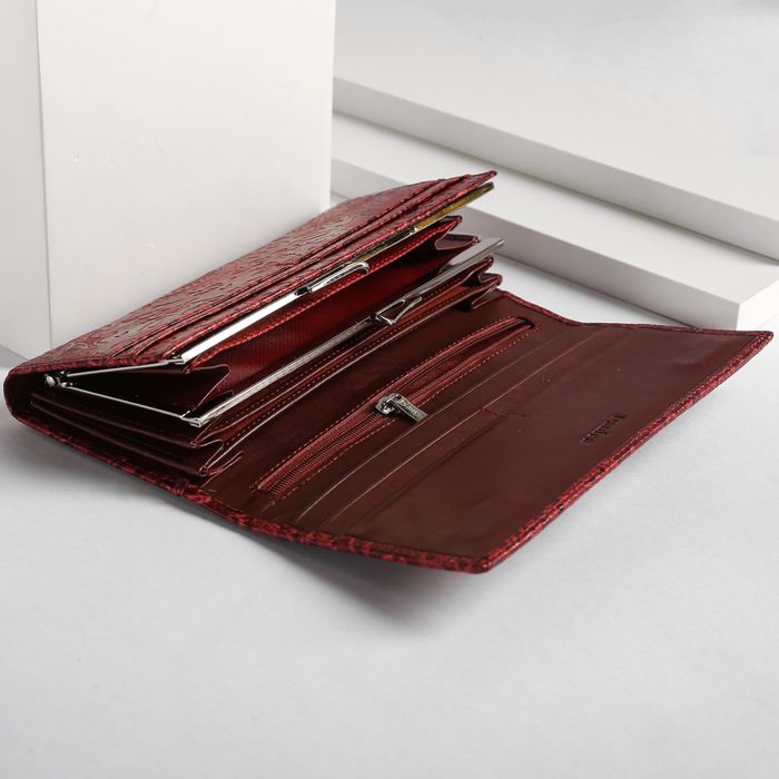 Кошелёк женский, 5 отделов, для карт, для монет, наружный карман, цвет бордовый