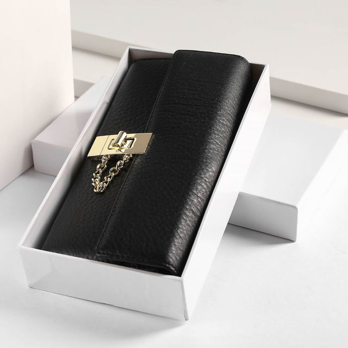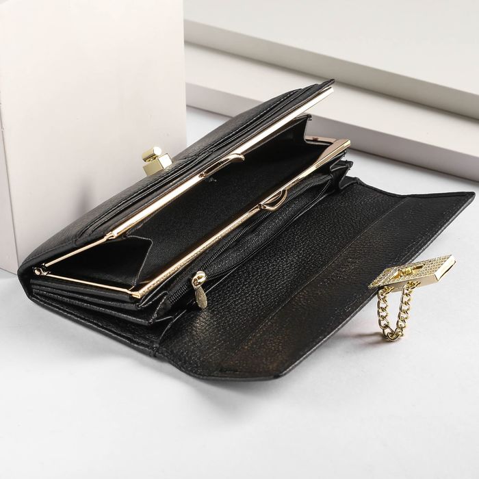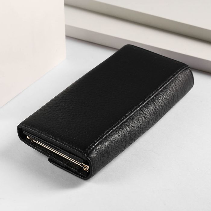 Кошелёк женский, 5 отделов, для карт, для монет, наружный карман, цвет чёрный
