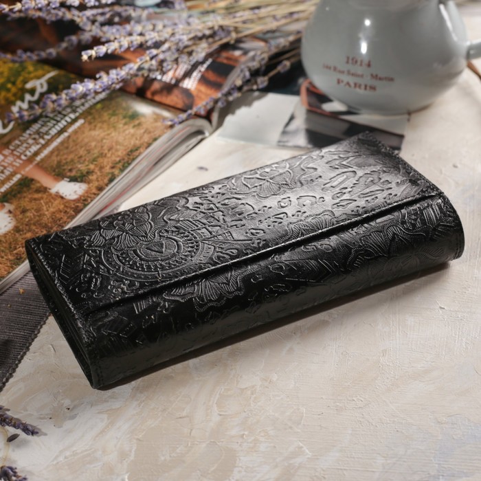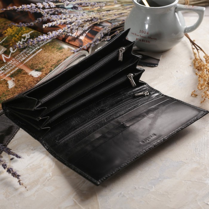 Кошелёк женский, 5 отделов, для карт, для монет, наружный карман, цвет чёрный