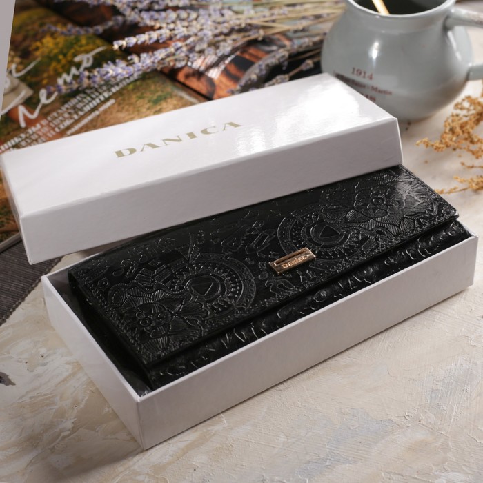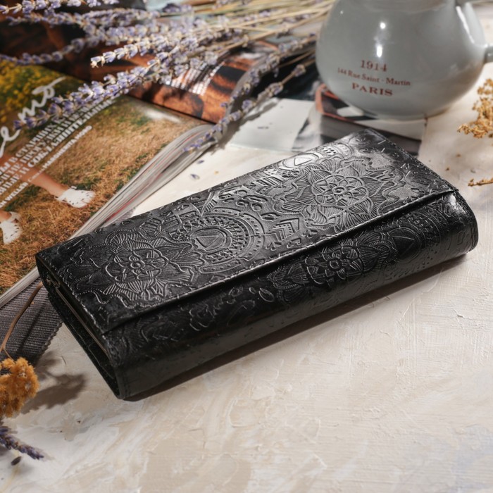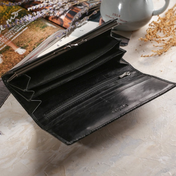 Кошелёк женский, 5 отделов, для карт, для монет, наружный карман, цвет чёрный