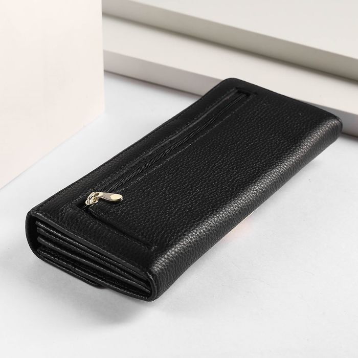 Кошелёк женский, 5 отделов, для карт, для монет, наружный карман, цвет чёрный
