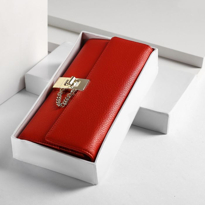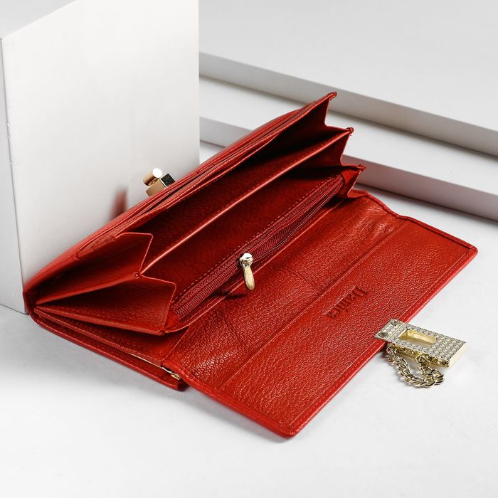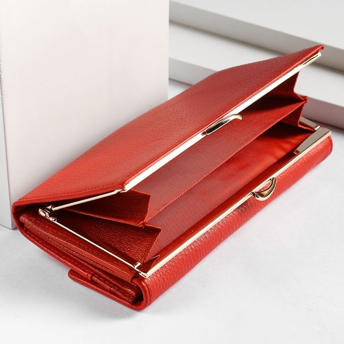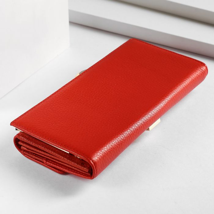 Кошелёк женский, 5 отделов, для карт, для монет, наружный карман, цвет красный