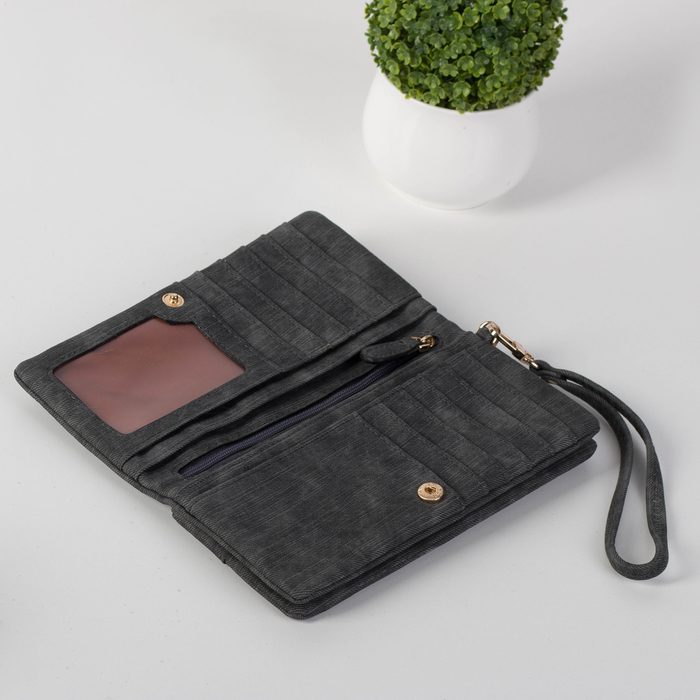 Кошелёк женский, 5 отделов, для карт, для монет, наружный карман, с ручкой, цвет серый
