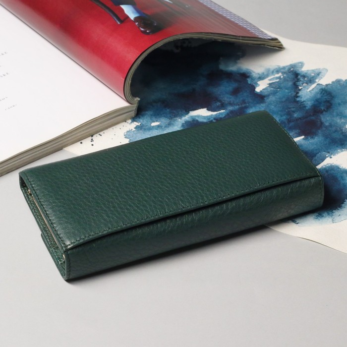 Кошелёк женский, 5 отделов, для карт, монет, наружный карман, цвет тёмно-зелёный