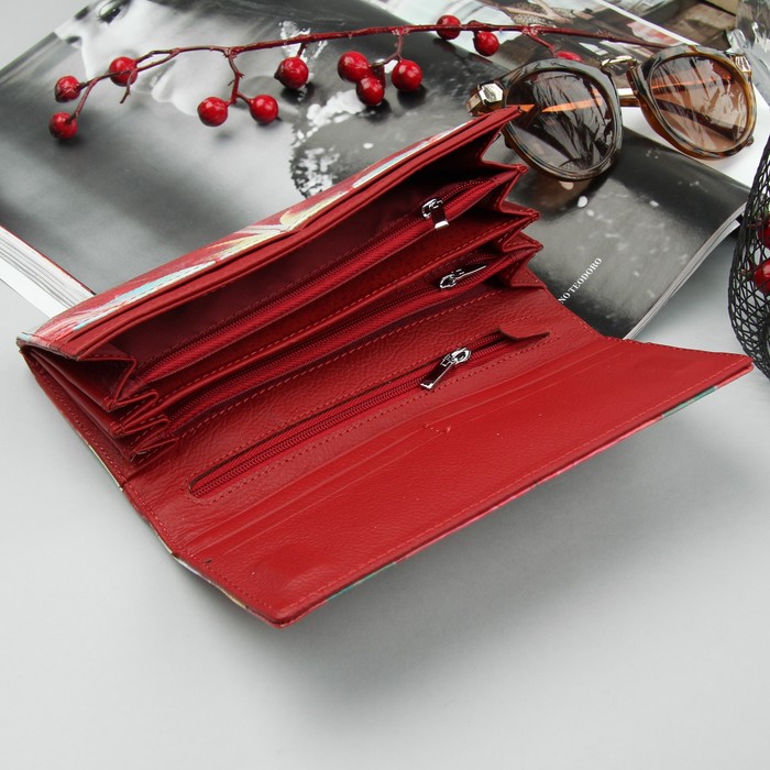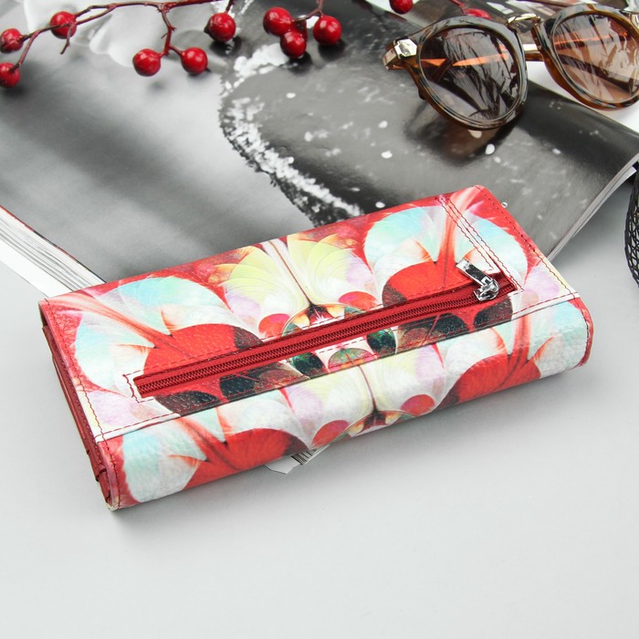 Кошелёк женский, 6 отделов, для карт, для монет, на клапане, наружный карман, цвет красный