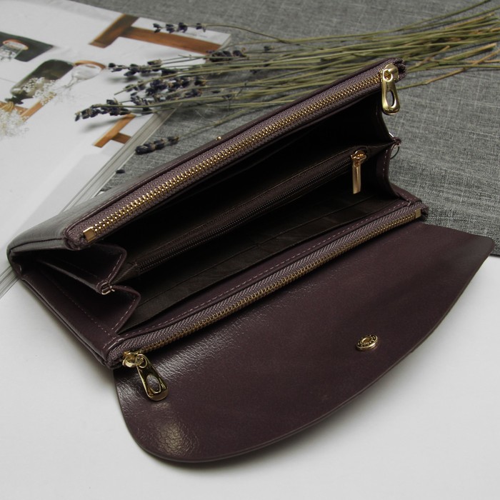 Кошелёк женский, 6 отделов, отдел для карт и монет, цвет фиолетовый