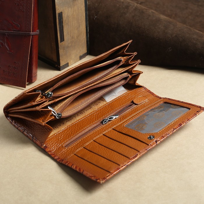 Кошелёк женский, 7 отделов, для карт, для монет, наружный карман, цвет бежевый