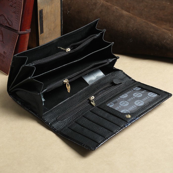 Кошелёк женский, 7 отделов, для карт, для монет, наружный карман, цвет чёрный