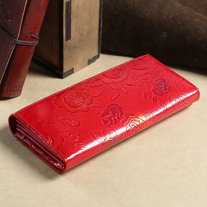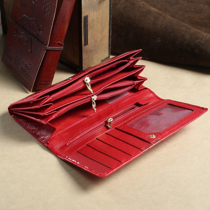 Кошелёк женский, 7 отделов, для карт, для монет, наружный карман, цвет красный