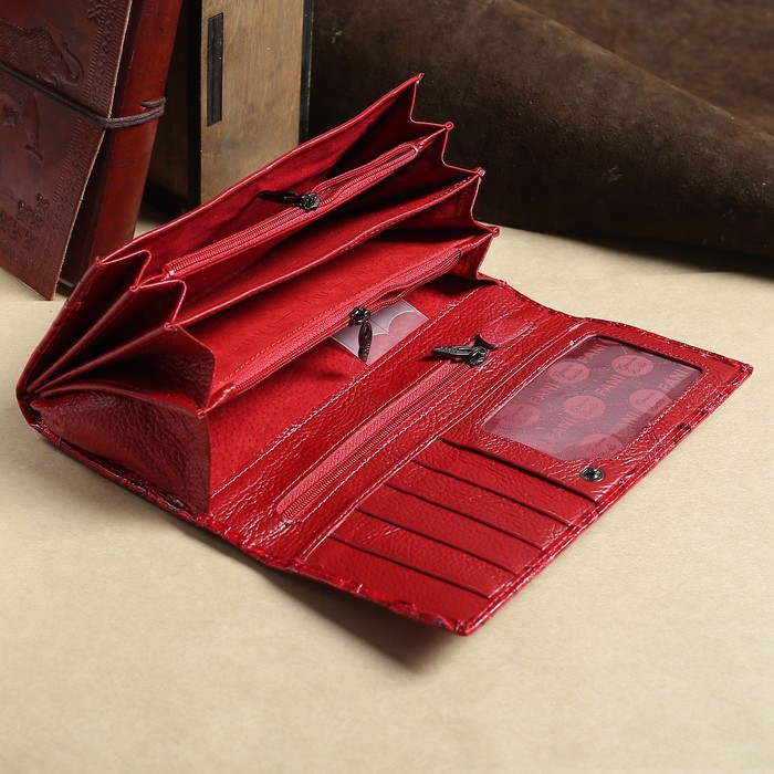 Кошелёк женский, 7 отделов, для карт, для монет, наружный карман, цвет красный
