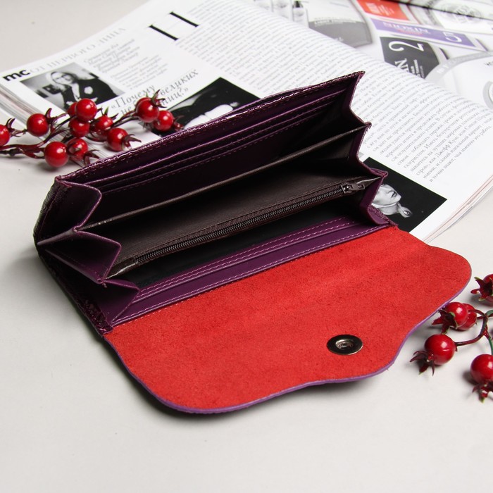 Кошелёк женский, 7 отделов, для карт, на клапане, наружный карман, цвет фиолетовый