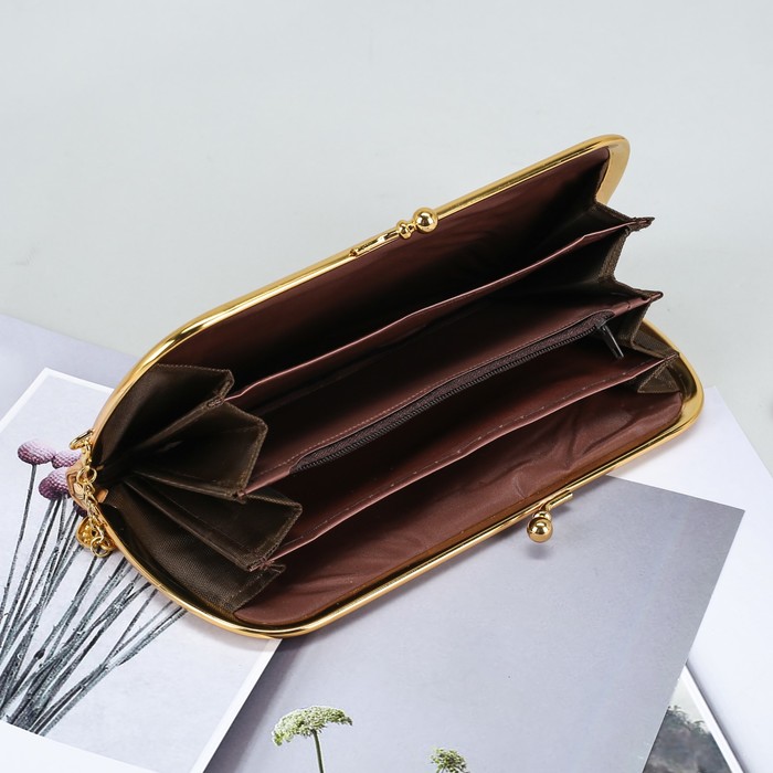 Кошелёк женский "Амалия", 5 отделов, на рамочном замке, цвет бежевый
