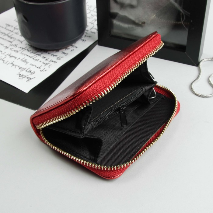 Кошелёк женский "Бантик", 2 отдела, для карт, для монет, цвет красный перламутровый