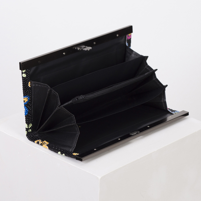 Кошелёк женский "Фантазия", 5 отделов на рамке, чёрный