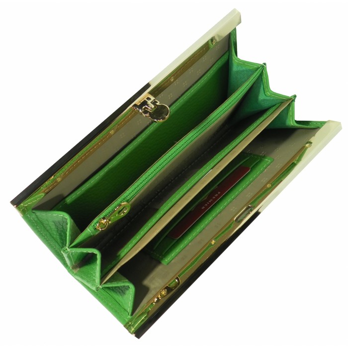 Кошелёк женский на фермуаре, 3 отдела для купюр, для монет, для кредитных карт, цвет зелёный