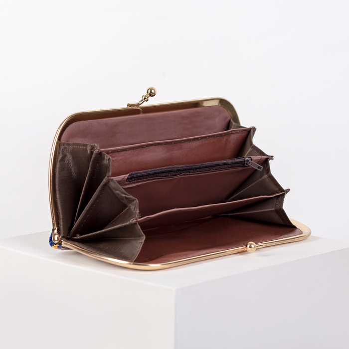 Кошелёк женский на фермуаре, 5 отделов, цвет синий/разноцветный