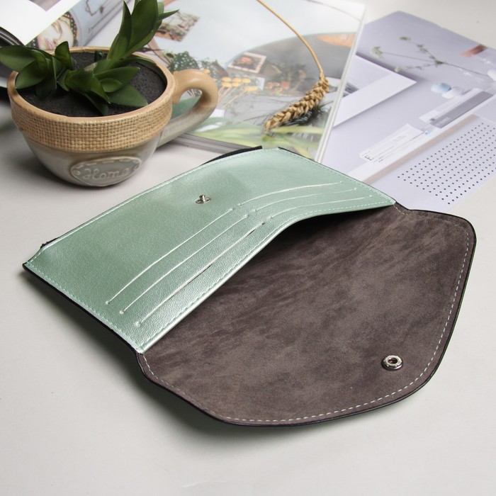 Кошелёк женский на клапане, 1 отдел, для карт, для монет, цвет перламутровый зелёный