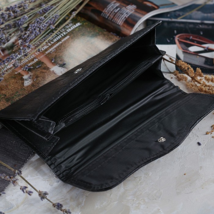Кошелёк женский на клапане, 2 отдела, для монет, цвет чёрный